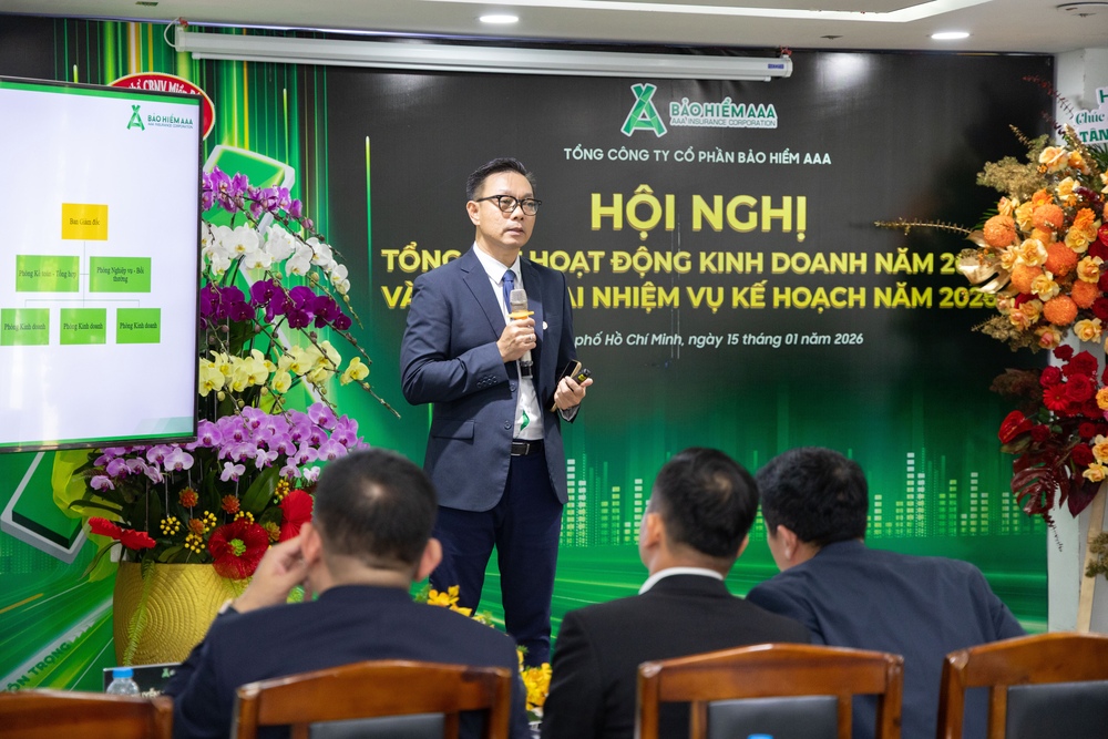 Ngày 15/01/2026 tại Trụ sở chính, Tổng Công ty cổ phần Bảo hiểm AAA đã tổ chức thành công Hội nghị Tổng kết hoạt động kinh doanh năm 2025 và triển khai nhiệm vụ kế hoạch năm 2026. Đây là sự kiện quan trọng nhằm nhìn lại chặng đường hoạt động trong năm 2025, ghi nhận những kết quả và dấu ấn nổi bật đã đạt được, đồng thời đề ra định hướng kế hoạch, mục tiêu và nhiệm vụ trọng tâm cho năm 2026.