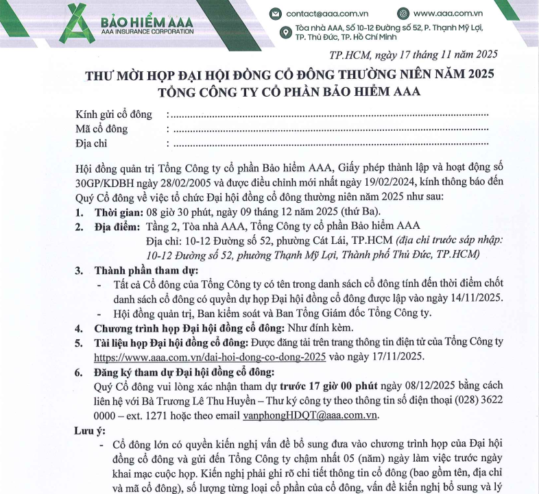 15. Tờ trình thay đổi tên Công ty Cổ phần Bảo hiểm AAA.